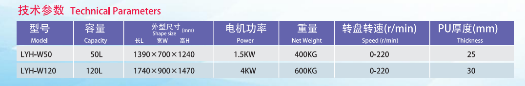 3. 变频器调速,可使转盘在0至1500转/分无级变速。